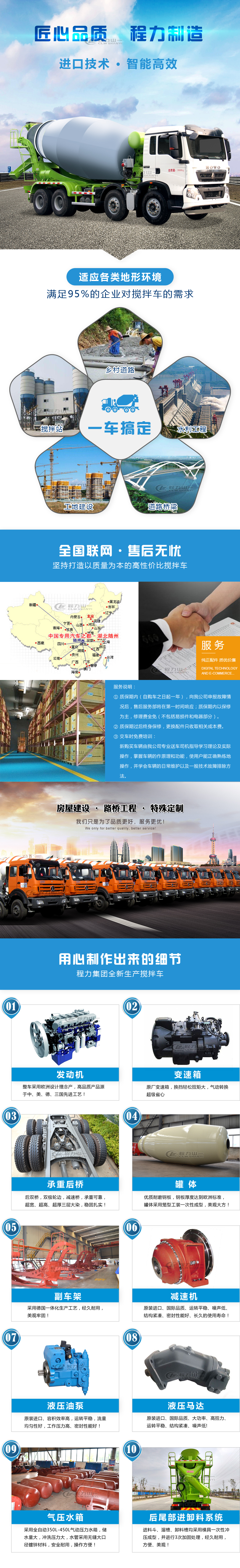 | 罐体有效容积15立方,罐体均采用Q345锰钢板制作,设计容量大,爬坡不漏料,叶片采用耐磨合金钢制作,加装耐磨条,双曲线对数螺旋设计,配备进口液压减速机,泵,马达。质量好,售后服务有保障。 |